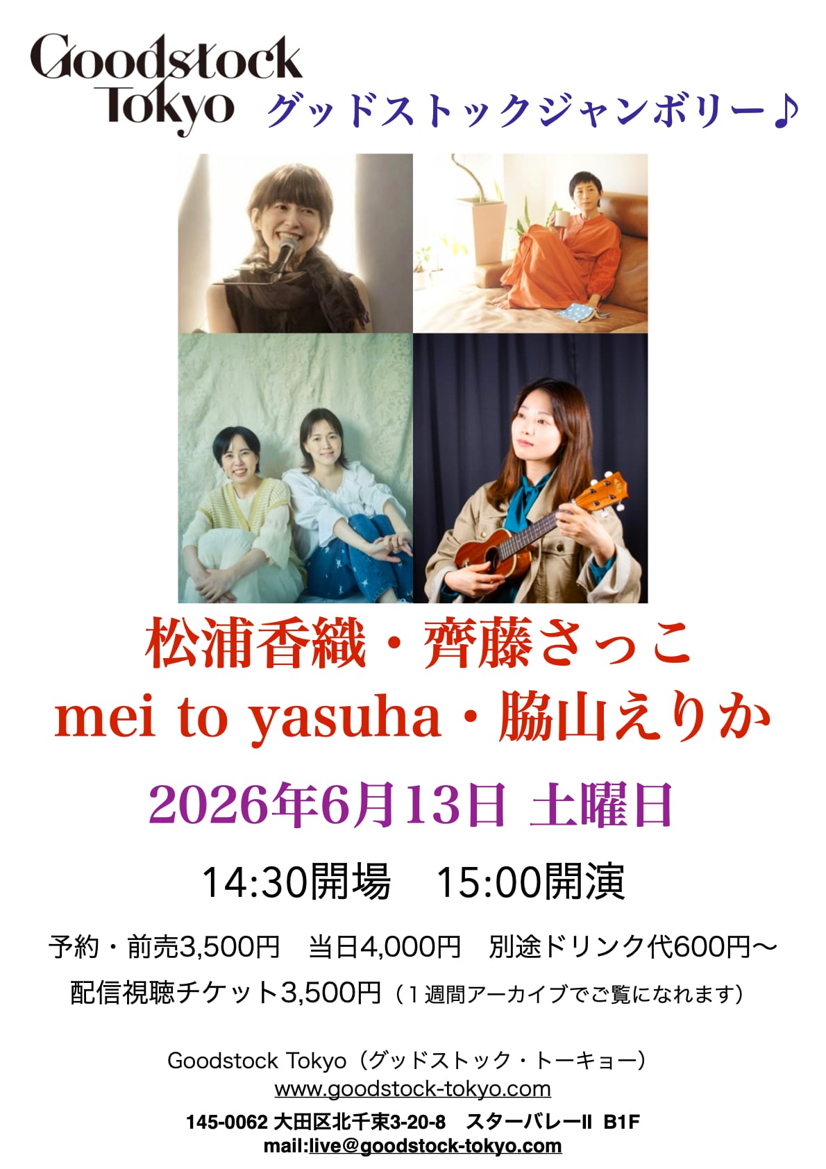 [出演] 齊藤さっこ、mei to yasuha、脇山えりか、松浦香織