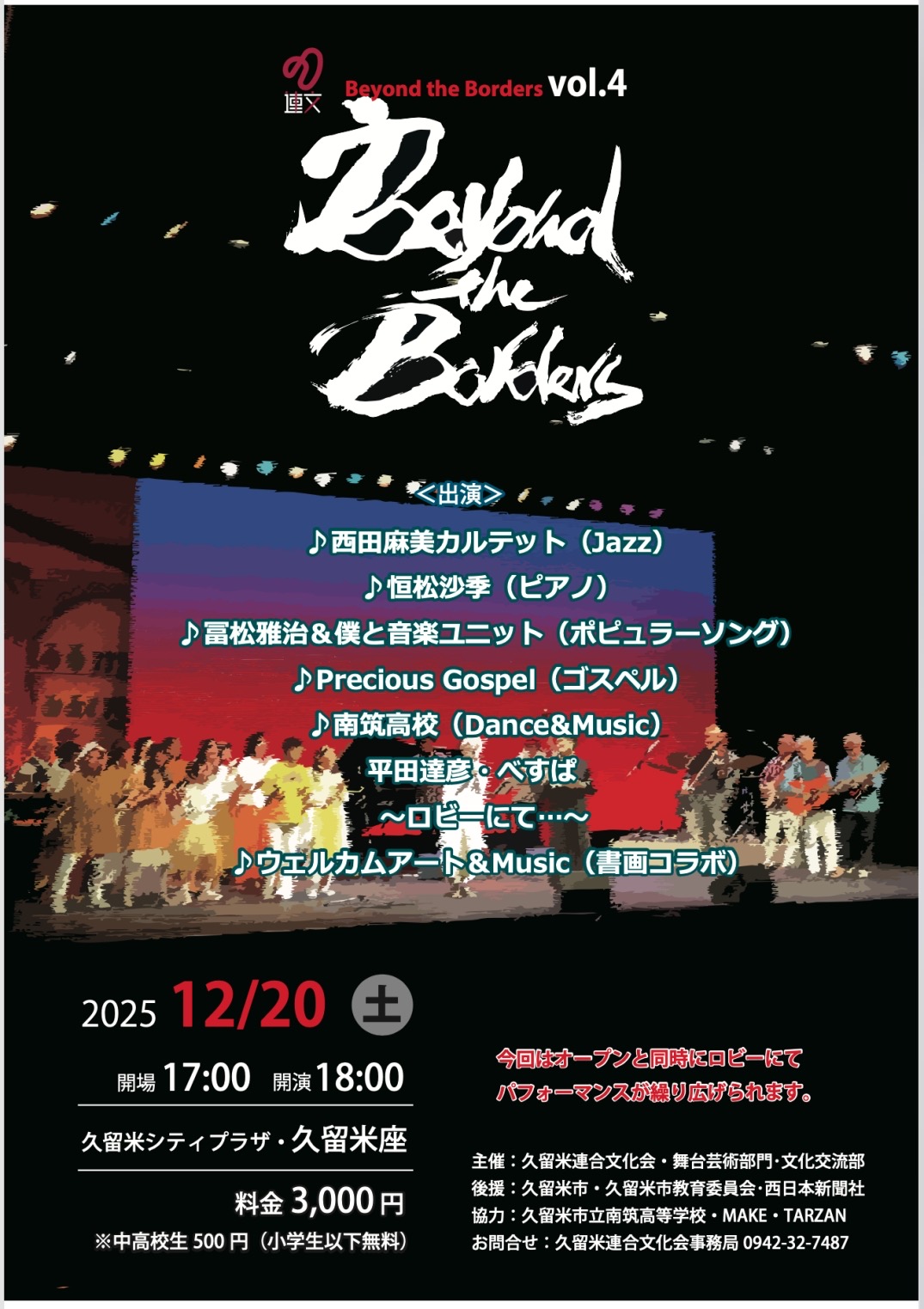 ジャズ、ゴズぺル、ダンス、クラシックから平田達彦まで。ロビーでは音楽と書のコラボも!境界線を超えてさまざまな表現が混ざり合う芸術の祭典Beyond the Bordersで歌います。ぜひお越しください。